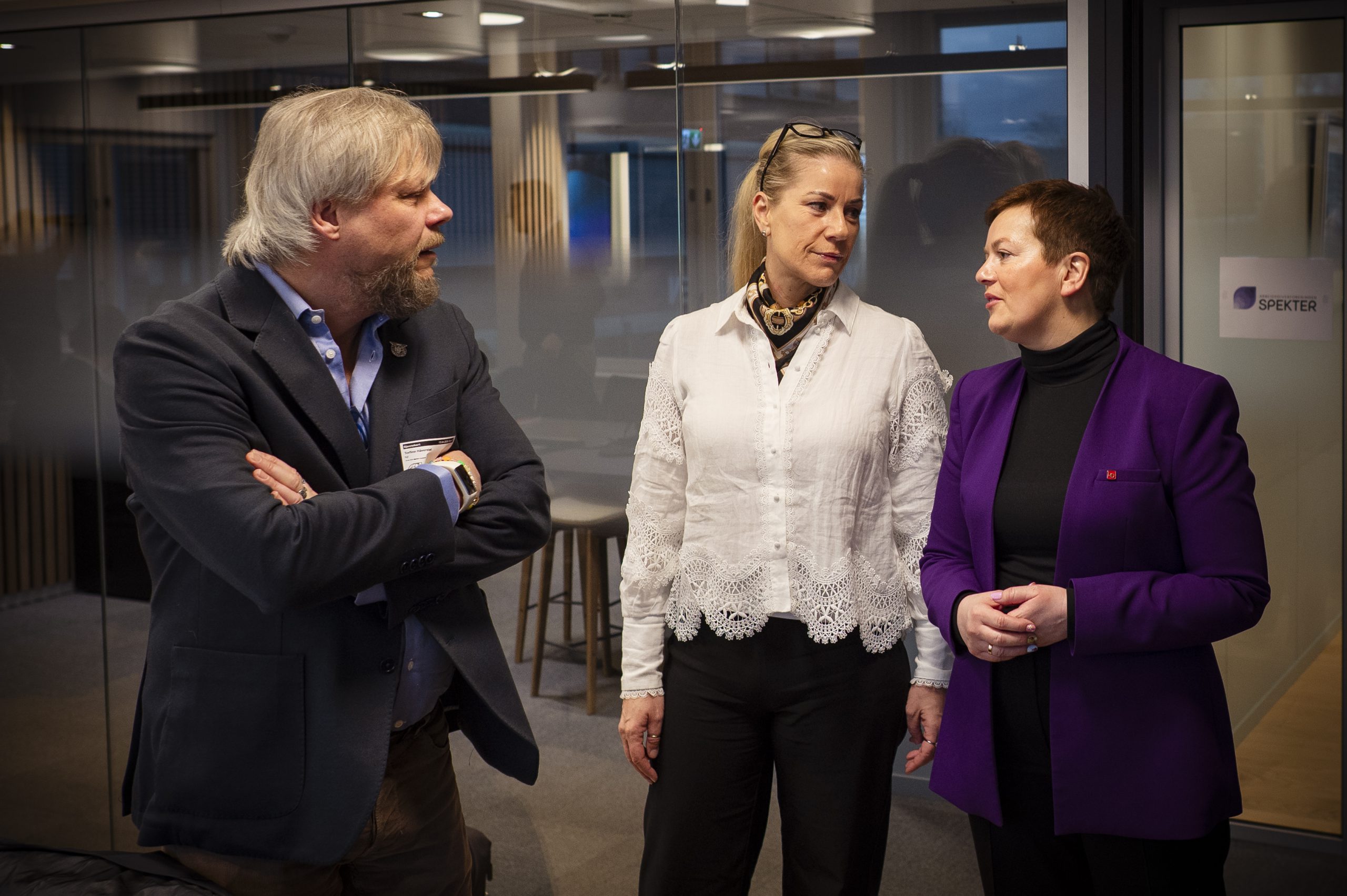ENIGHET: NJFs forbundsleder Torfinn Håverstad, nestleder Bianca Fedje og LOs forhandlingsleder Henriette Jevnaker (t.h.) diskuterer under forhandlingene i Spekter-oppgjøret.