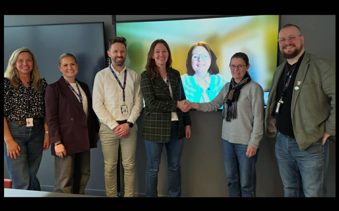 – Vi har fått gjennomslag for god lønnsvekst og viktige punkter for våre medlemmer. Et godt grunnlag for veien videre, sier Eli Ingeborg Baadstøe-Ostrø, NJFs forhandlingsleder. Hun har forhandlet sammen med leder i Entur landsforening, Axel Fjeld (t.h.) og ledelsen i Entur ved Ragnhild Laxaa, Helene Dalaker Kui, Petter Blytt Jerven, Kjersti Jamne og Birgit Grandalen